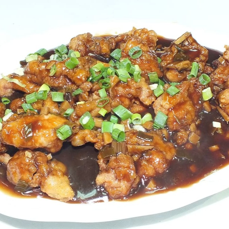 Filé de frango com cebolinha regado ao delicioso molho de gengibre à moda chinesa. serve 2 pessoas.
