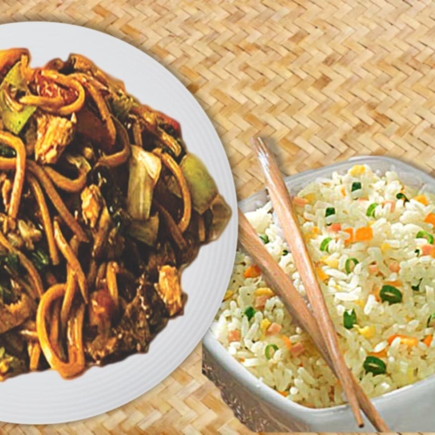 Macarrão com filé de boi, cenoura, cebola, pimentão, brócolis e repolho regados ao delicioso molho chinês especial + Arroz Yakimeshi com presunto, cenoura, cebolinha e ovos mexidos. Serve 2 pessoas. Promocao