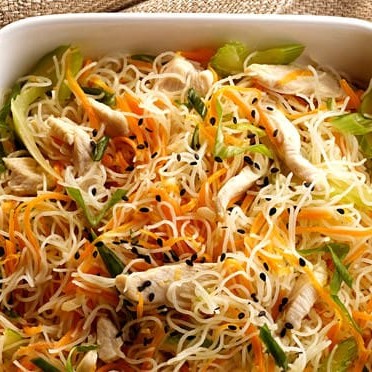 Macarrao de arroz frango pimentao cenoura cebola repolho au tempero chines