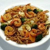 Macarrão, camarão, pimentão, cenoura, cebola, repolho e brócolis regados ao delicioso molho chinês especial. Serve 2 pessoas.