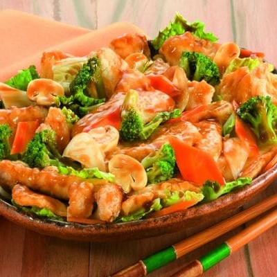 Filé de frango, cenoura, cebola, repolho brócolis ao delicioso tempero chinês especial. Serve 2 pessoas promocao
