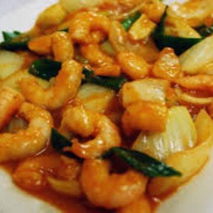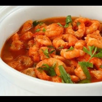 Camarão regado ao molho de tomate especial com cebolinha. serve 2 pessoas
