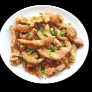 Tiras de Lombo frito crocante com cebolinha ao delicioso tempero chinês especial. Serve 2 pessoas.