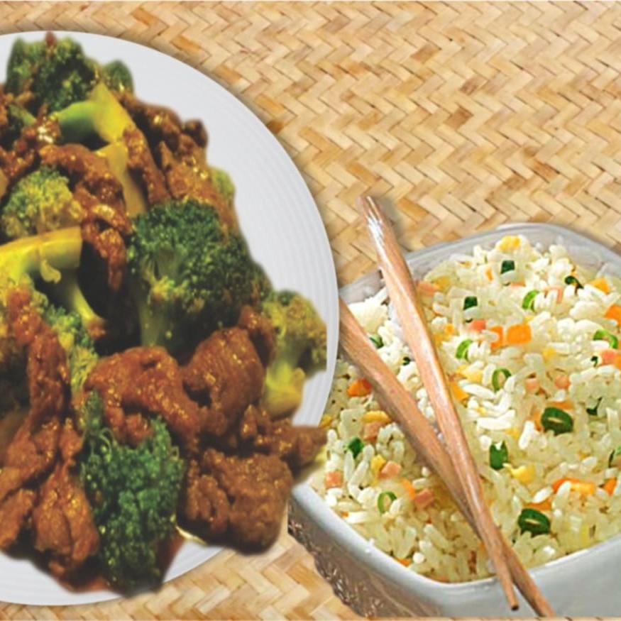 Filé de boi, cenoura e brócolis, regados ao delicioso molho chinês especial + arroz yakimeshi com presunto, cenoura, cebolinha e ovos mexidos. Promocao