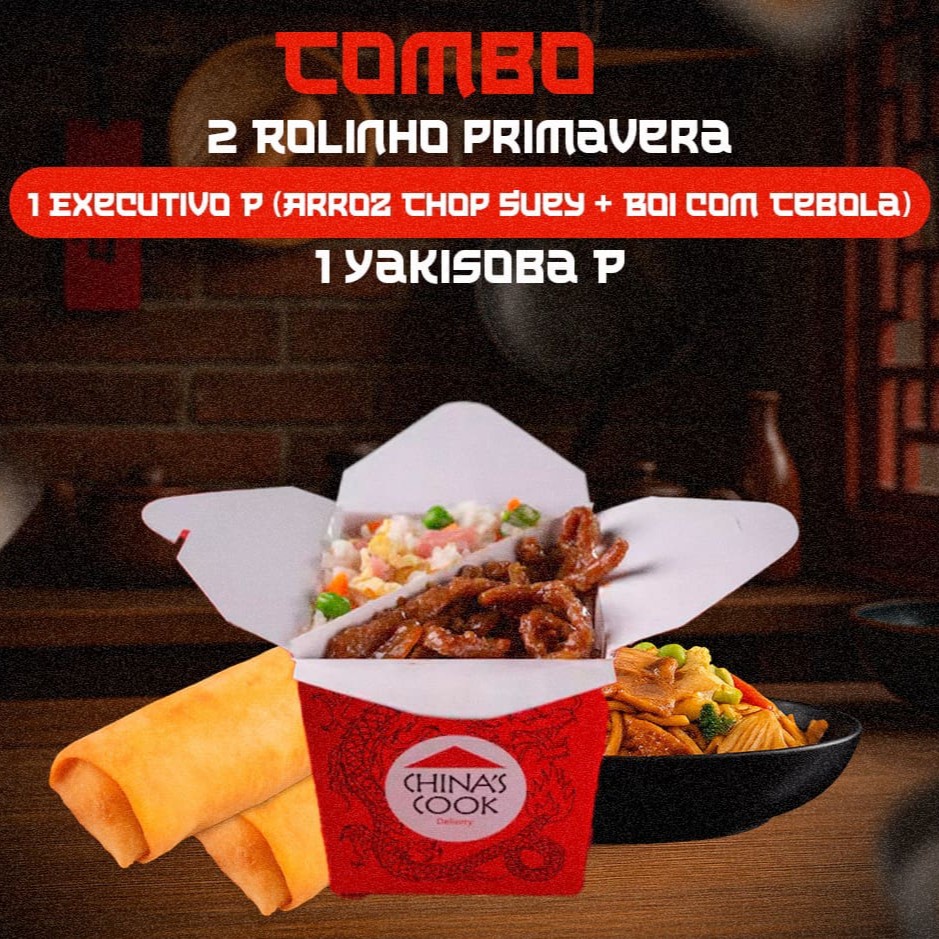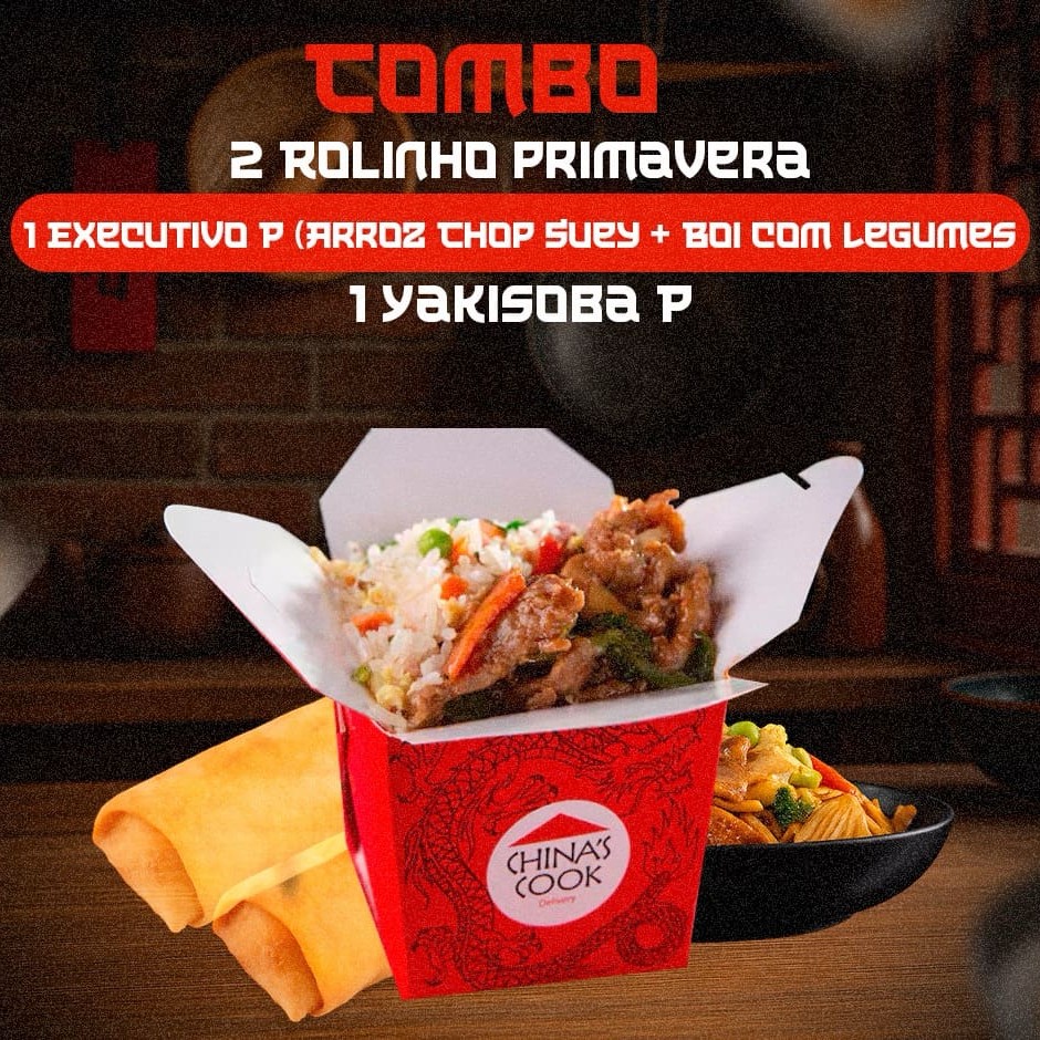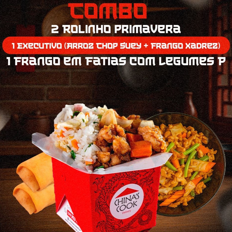 2 Rolinho Primavera + 1 Executivo Boi C Cebola Chop Suey P + 1 Frango Xadrez P