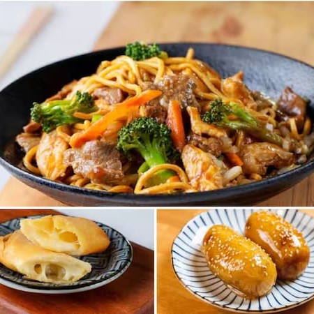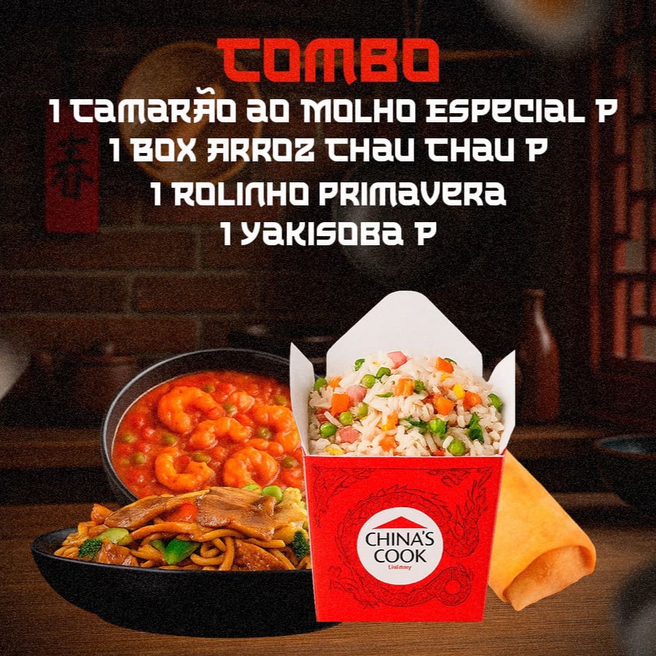1 Harumaki + 1 Yakisoba P + 1 Arroz Chau Chau P + 1 Camarão Ao Molho Especial P