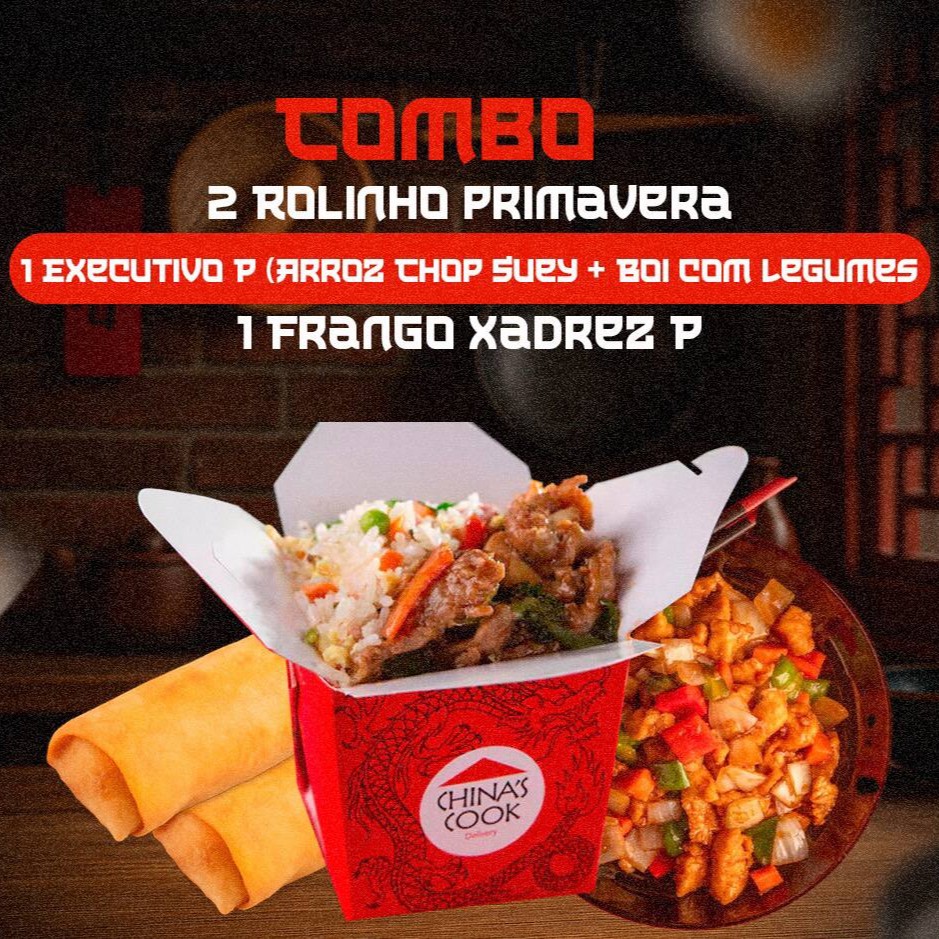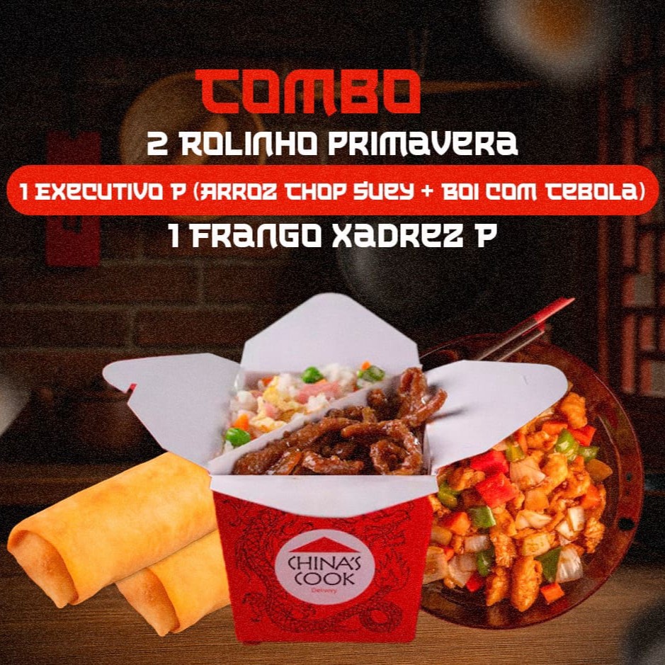 2 Rolinho Primavera + 1 Executivo Boi C Cebola Chop Suey P + 1 Frango Xadrez P