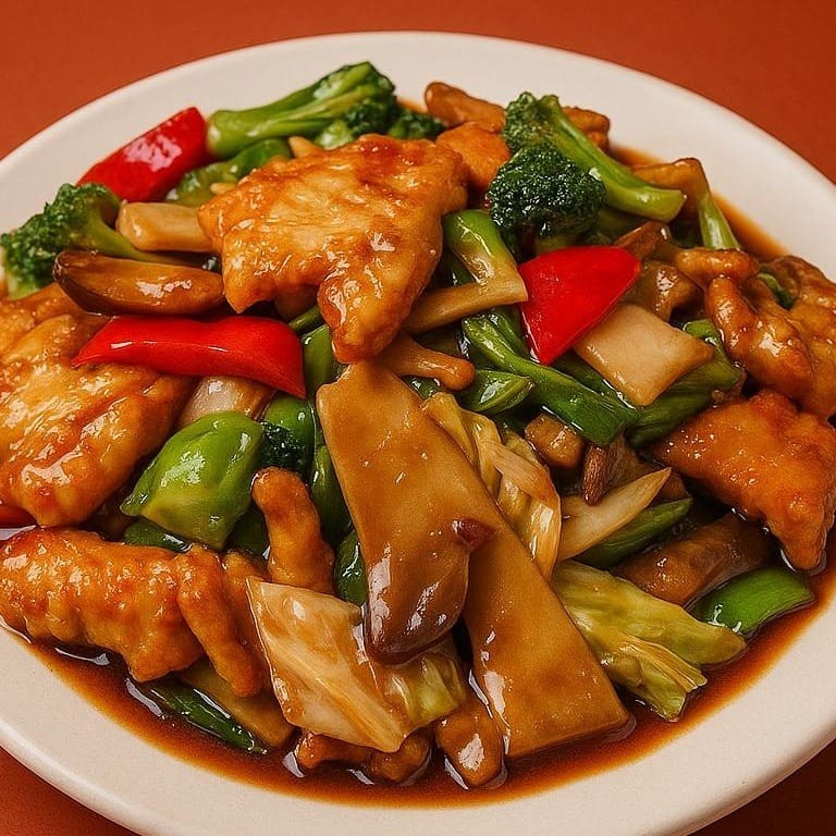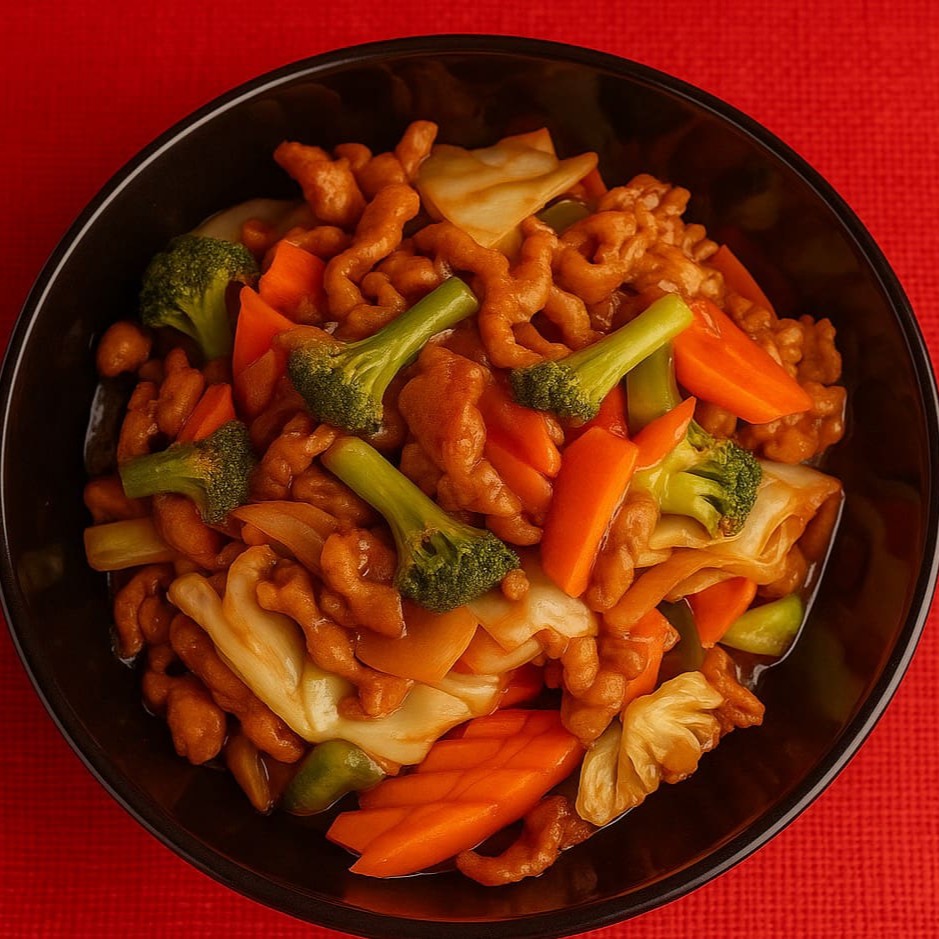 Carne macia e legumes salteados com um molho especial que combina doçura e sabor marcante.