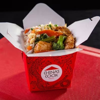 Uma refeição completa e equilibrada, com meia porção de arroz Chop-Suey e frango com legumes frescos. Perfeito para um almoço individual com sabor e qualidade únicos!