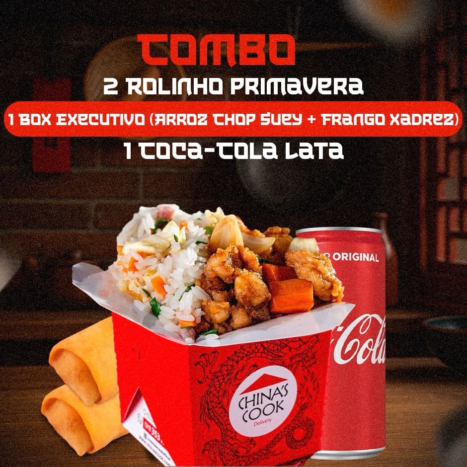 2 Rolinho Primavera + 1 Box Executivo Frango Xadrez Chop Suey P + Coca-cola Lata