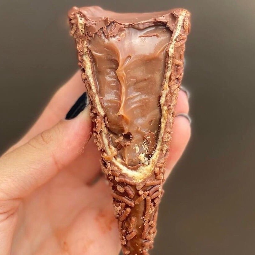 Cone trufado Brigadeiro, com delicioso recheio de brigadeiro 50% cacau , com casquinha super crocante de chocolate meio amargo e granulado .
