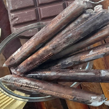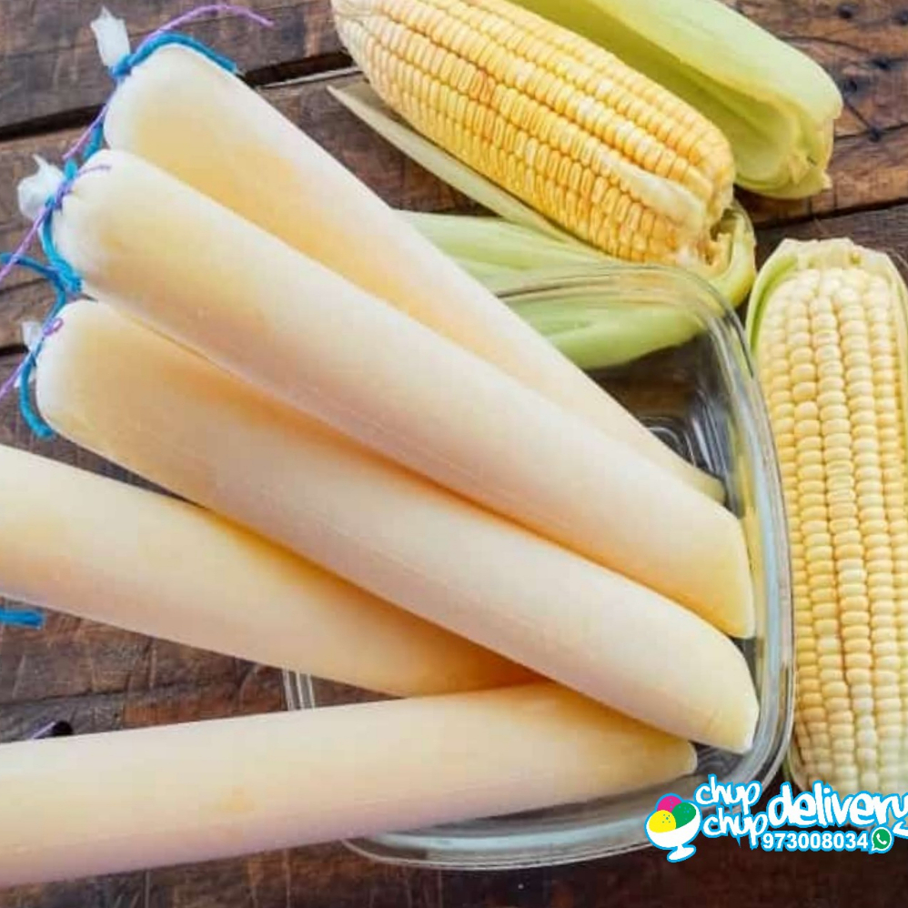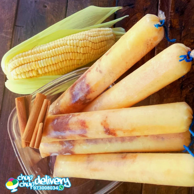 Milho Verde batido com creme de leite e muito leite condensado envolvido com tempero de canela em pó!