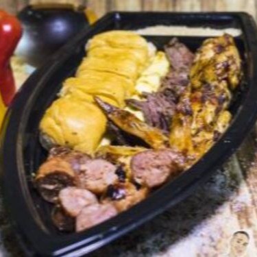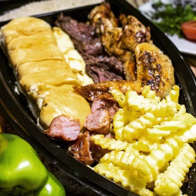 Essa delícia é para os mais exigentes, ela vem com 1 pão de alho com queijo, 1 fraldinha desmanchando, 1 espetino de queijo coalho, 1 espetinho linguiça artesanal recheada com bacon,1 porção de asinha com um tempero sem igual , batata frita crocante e ainda acompanha nosso delicioso molho Sweet sauce e nossa incrível farofa .