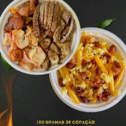 100g coração de frango, 100g carne bovina, 100g franbacon, 100g carne suína