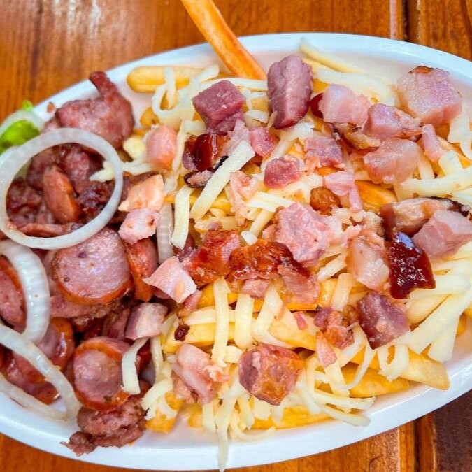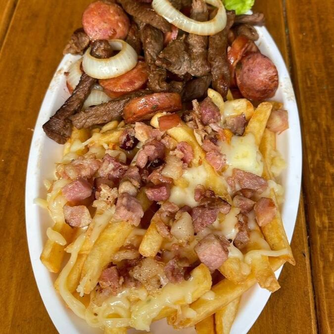 Deliciosa e muito crocante. Acompanha, batata frita, muçarela, Catupiry ou cheddar, bacon e linguiça acebolada.