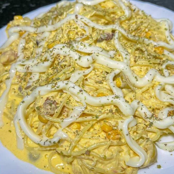 Muito saboroso. Contém, 300 gramas de Espaguete / Molho de Frango / Bacon / Milho / Azeitona / Creme de Leite. Finalização: Muçarela, Catupiry ou Cheddar. Peso Final 800 gramas.