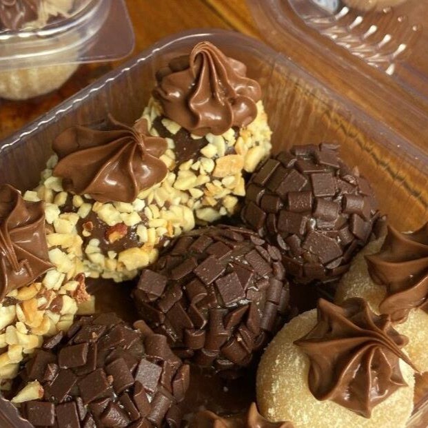 3 brigadeiros tradicionais, 3 brigadeiros de Ninho, 3 brigadeiros de ferrero.