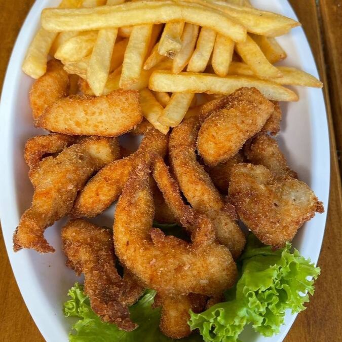 Deliciosa e muito crocante. Acompanha, batata frita e empanadinho de frango.