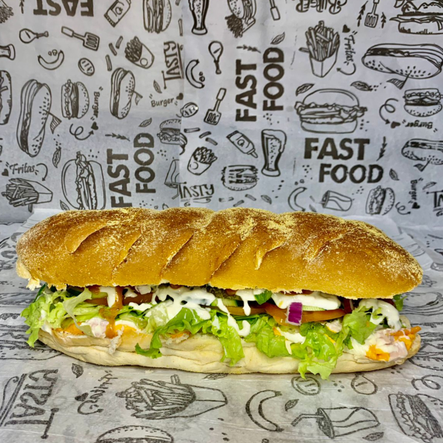 Muito saboroso. Contém, Pão / Molho / Salsicha / Muçarela / Presunto / Bacon / Saladinha / Azeitona / Milho e Batata Palha.