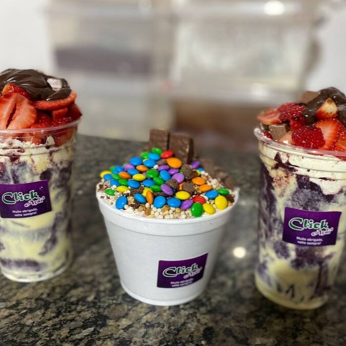 açai, sorvete, picolé, gelado, taça açai, chocolate, churros, Confete, Kit Kat, Oreo, barca, morango, Ovomaltine, Ninho, banana, frutas, geladinho, cremosinho.