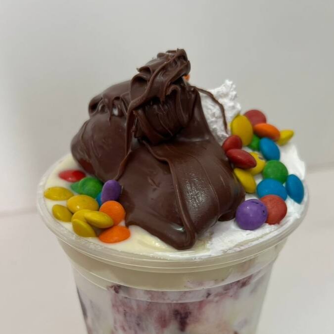 – Uma explosão de sabor em cada camada! Imagine um açaí cremoso combinado com Nutella, o delicioso creme Ninho, uma nuvem de chantilly, uma chuva de leite em pó e o toque final de confetes coloridos! É doce na medida certa, irresistível em cada colherada e perfeito pra quem ama se presentear com muito sabor! Peça agora e sinta o que é felicidade em forma de açaí!