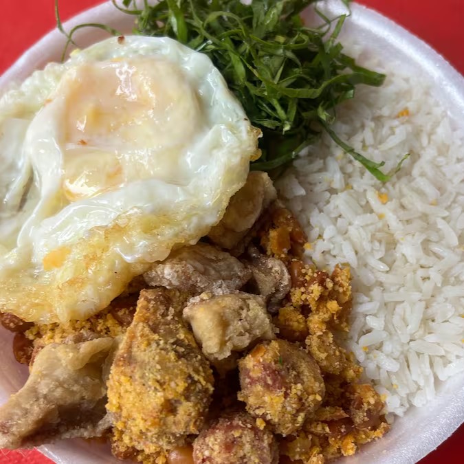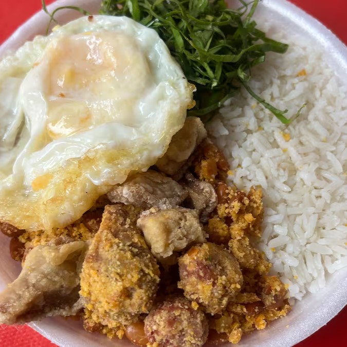 Acompanhamento-tropeiro,Arroz,torresmo,couve,ovo,frito,isca de Fígado