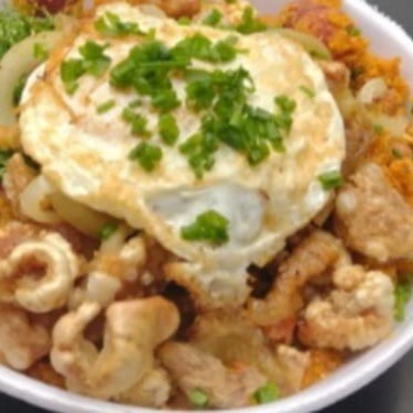 Arroz, feijão tropeiro, couve picada, torresmo e ovo frito