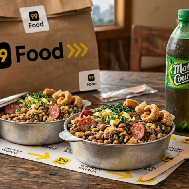 02 Feijoadas Tradicionais - Arroz, feijoada, couve picada e torresmo (500g) + 01 Mate Couro 1L