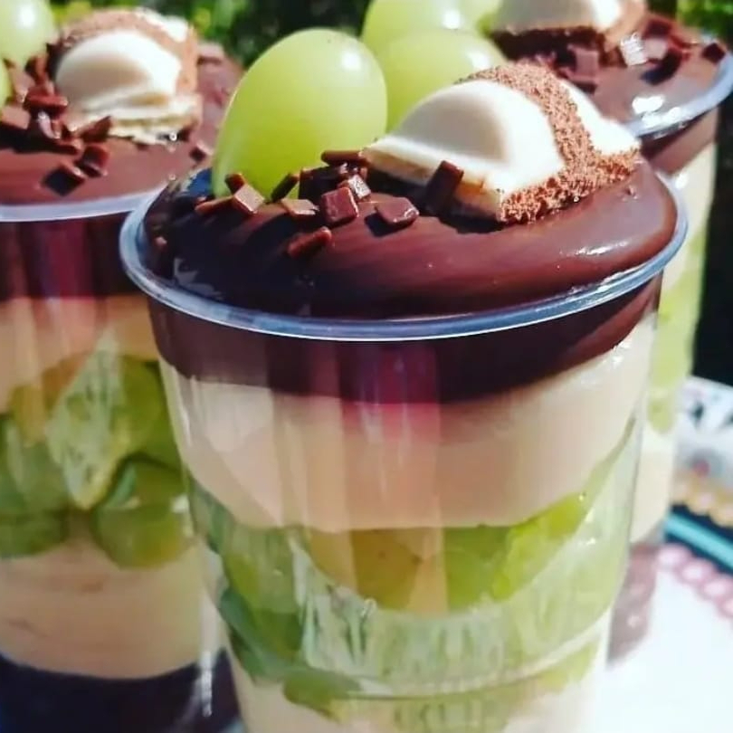 Creme suave de maracujá com chocolate, equilibrando doce e azedinho.