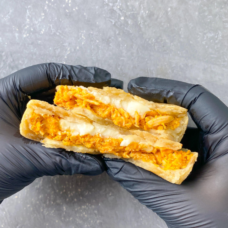 Empadão de frango com requeijão, bem cremoso e saboroso. Massa leve e douradinha com recheio que derrete na boca. Perfeito para qualquer hora! (aprox 150gr)