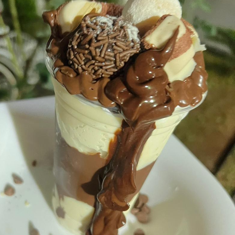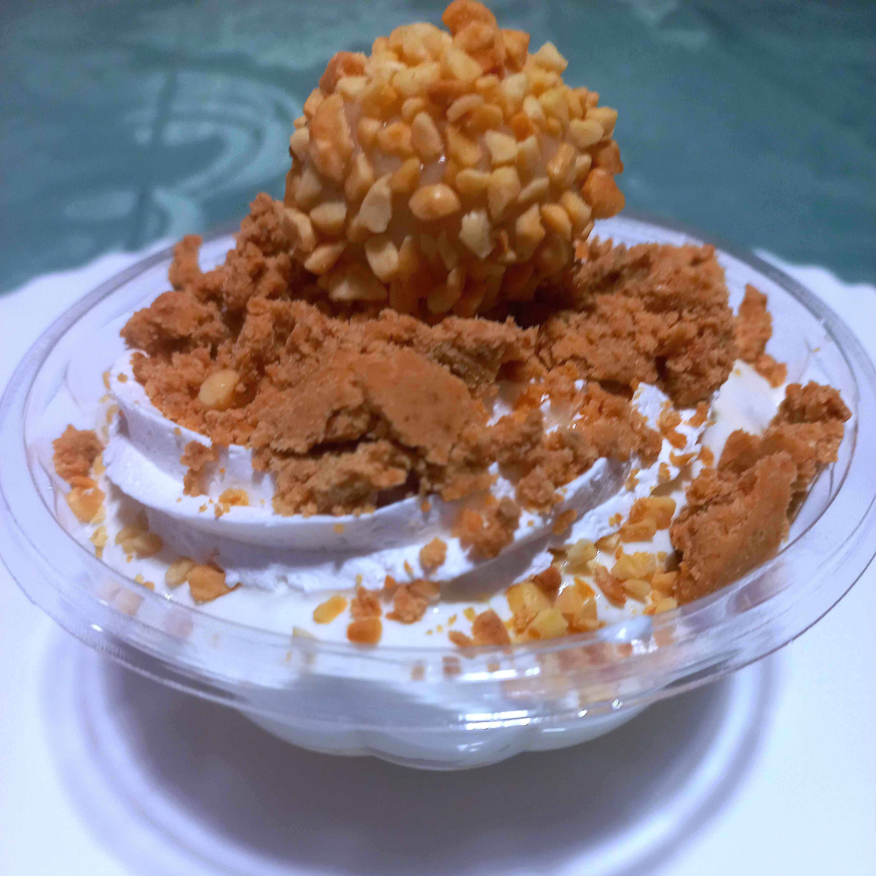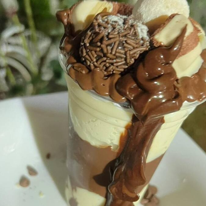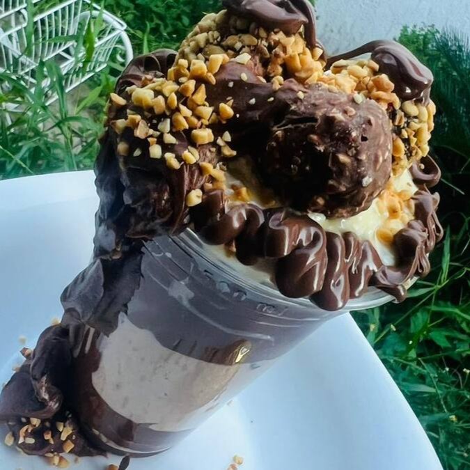 creme de ninho, mousse de amendoim, finalizado com chantininho e paçoca