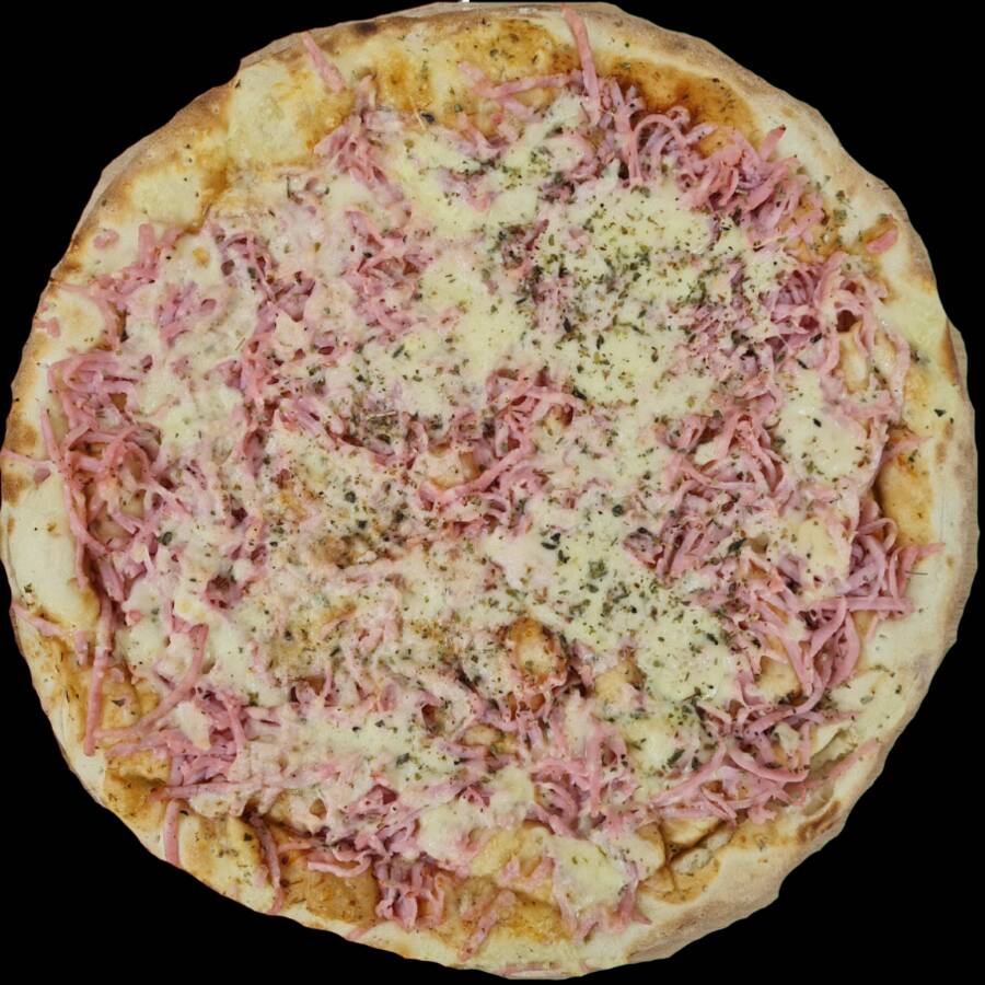 Pizza Artesanal, presunto premium, quiejo mussarela e oregano.