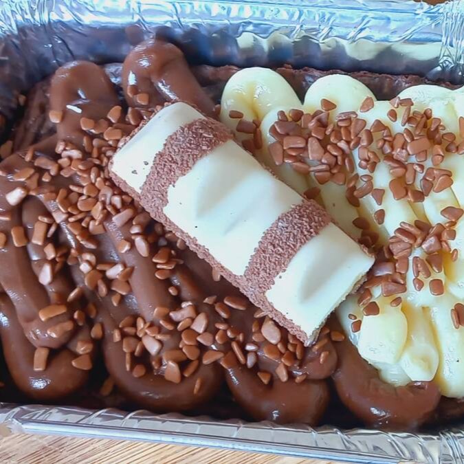 Massa crocante por fora, macia por dentro, com cacau e pedaços de chocolate branco. Recheada com creme 4 leites e um toque de cream cheese. Perfeito para os mais exigentes paladares!!