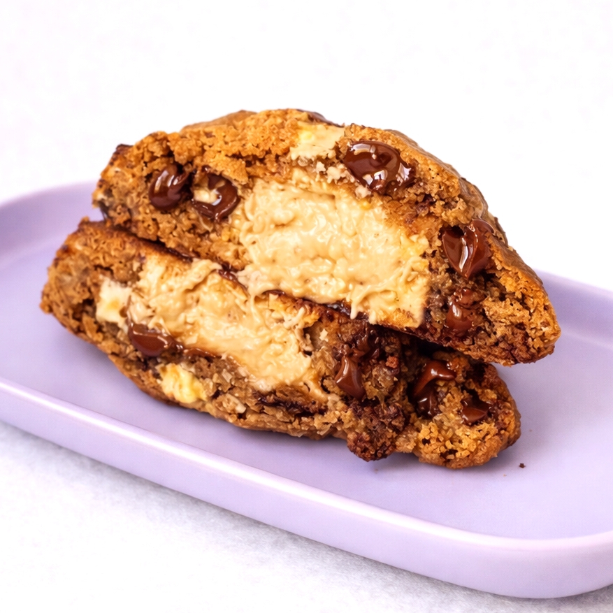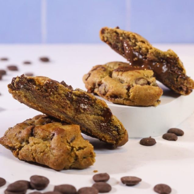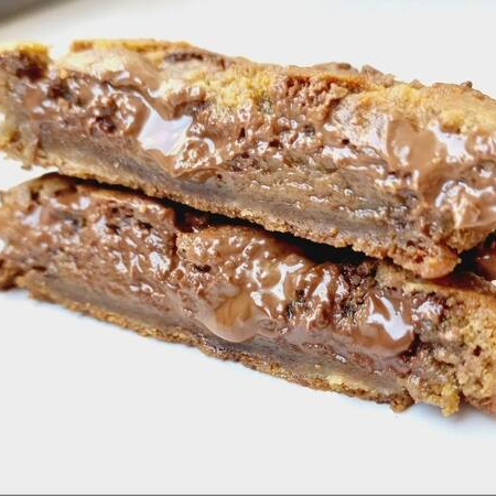 Massa amanteigada de baunilha com generosas gotas de chocolate meio amargo, macia e crocante por fora, recheada com pura Nutella. O cookie queridinho do cardápio! Aprox. 110g