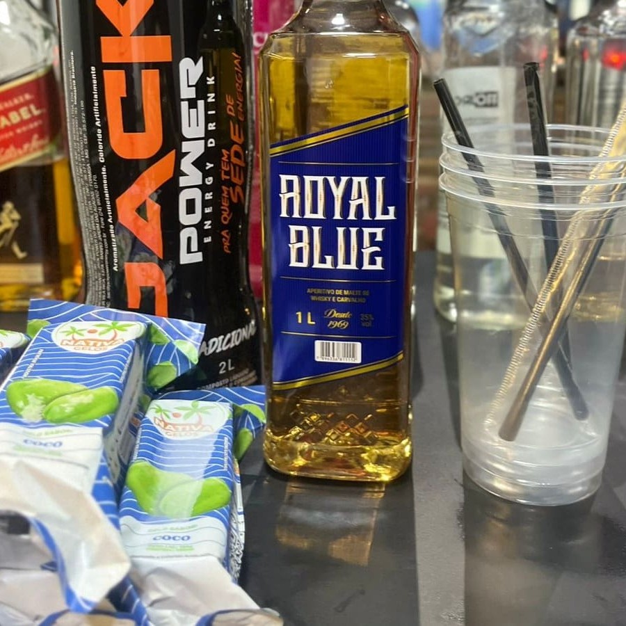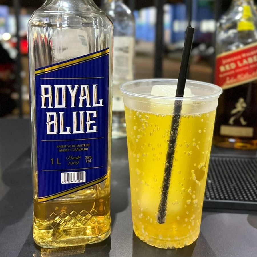 Whisky Royal Blue + energético + gelo saborizado.