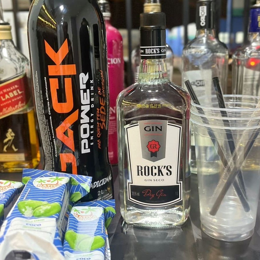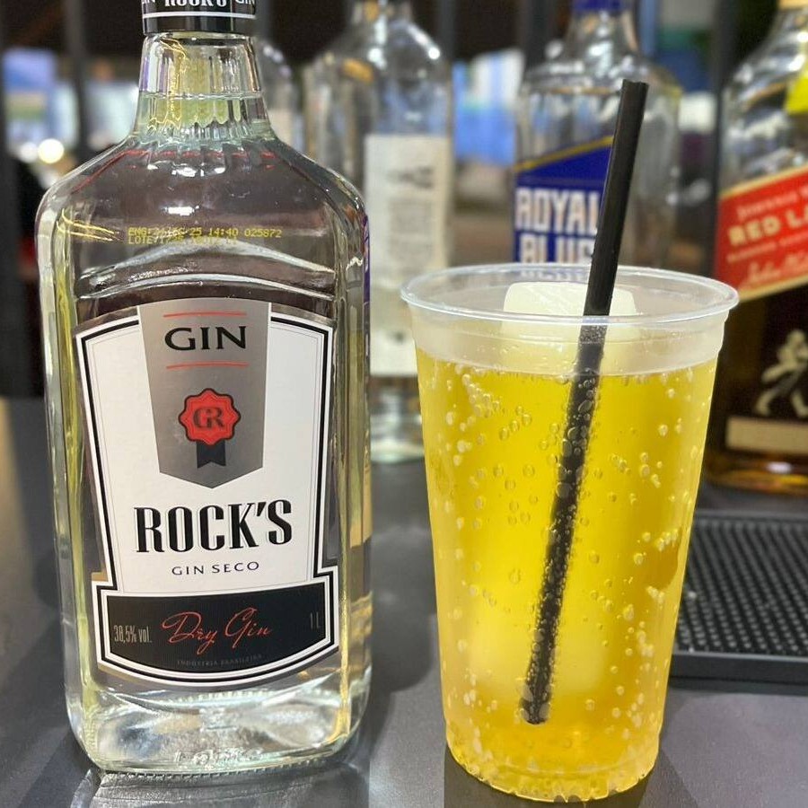 Gin Rock's + energético + gelo saborizado.