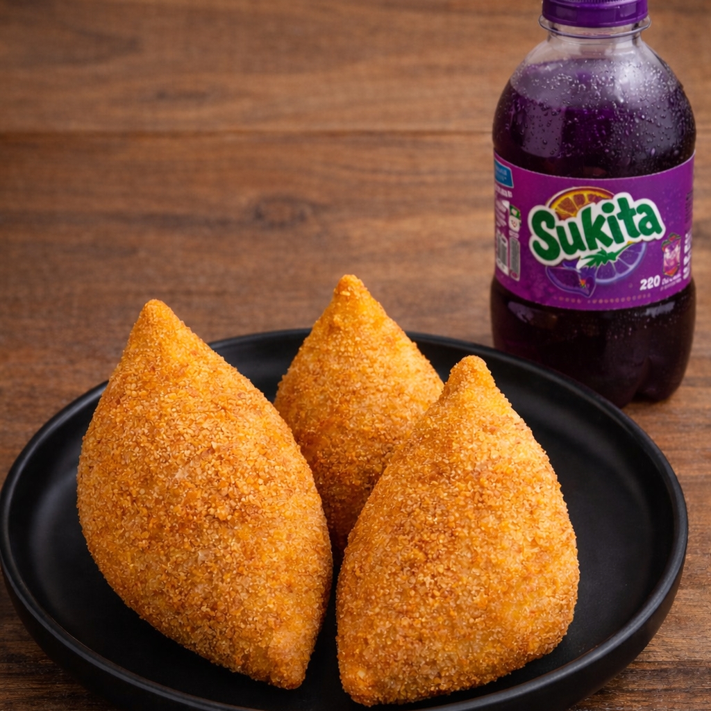 Fritamos na hora. Ideal para quem precisa de um lanche rápido. São 3 salgados crocantes (Aprox 65 gramas cada) + refrigerante 200 ML (será encaminhado o que estiver disponível no dia: guaraná zero ou tradicional, Sukita sabores, Pespi zero ou tradicional) 200 ML! Sabores disponíveis : coxinha, bolinha de presunto e queijo, bomba de calabresa, pastel de carne, salsicha e milho. " Inserir em observação o sabor desejado" ou será encaminhado de forma sortida! Dica: adicione 1 refri ou 2 salgados e complete seu pedido mínimo 😉