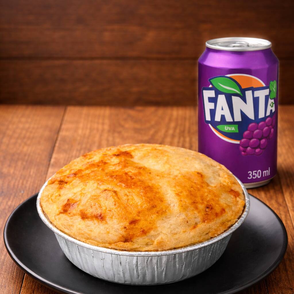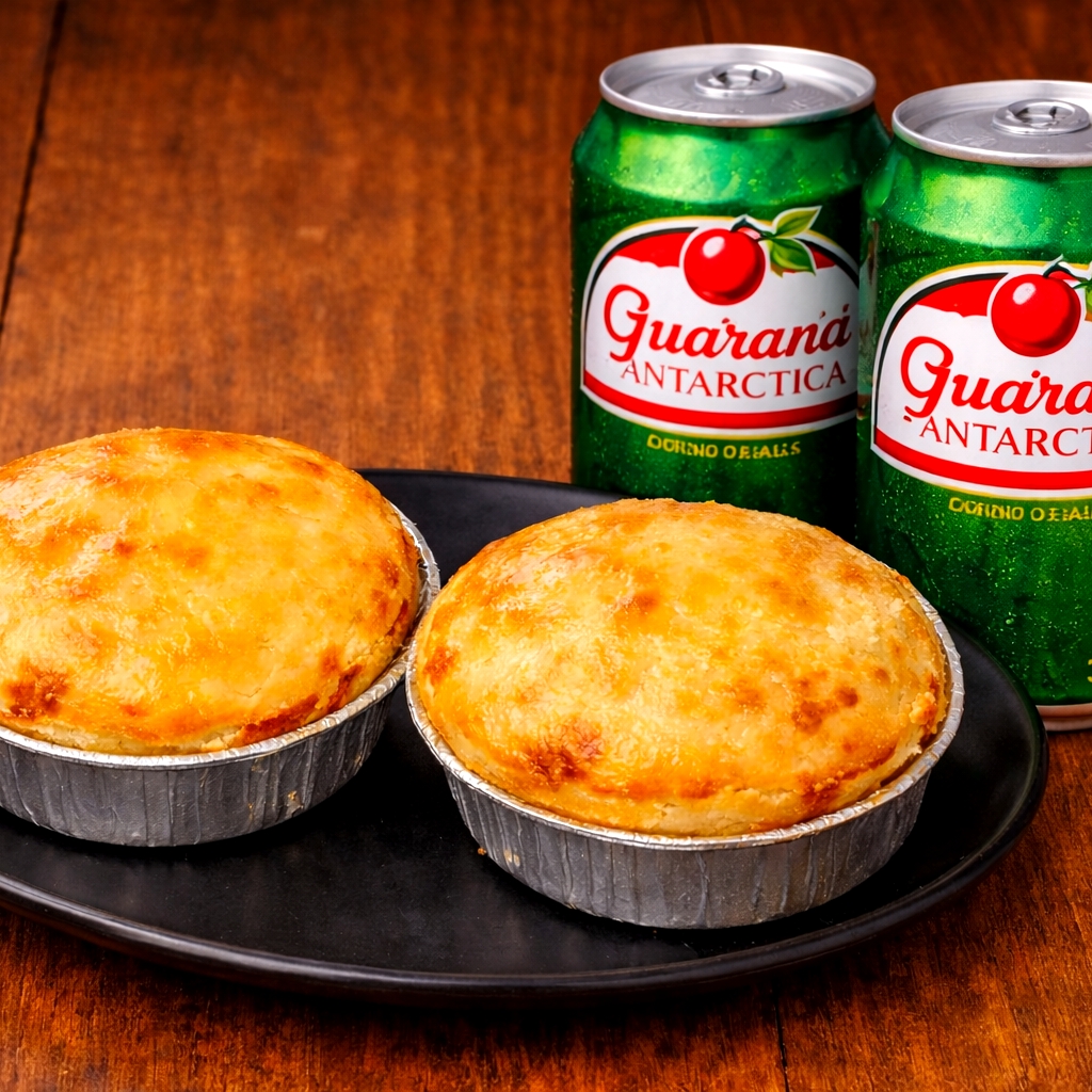 São duas tortinhas de 190 gramas aproximadamente, com um delicioso recheio de frango cremoso e um requeijão vindo direto da roça de Bonfim. Massa que derrete na boca. Quentinha e saborosa. Acompanha 2 guaraná antartica de 350 ML geladinha. Cada mordida é uma explosão de sabor 🔥