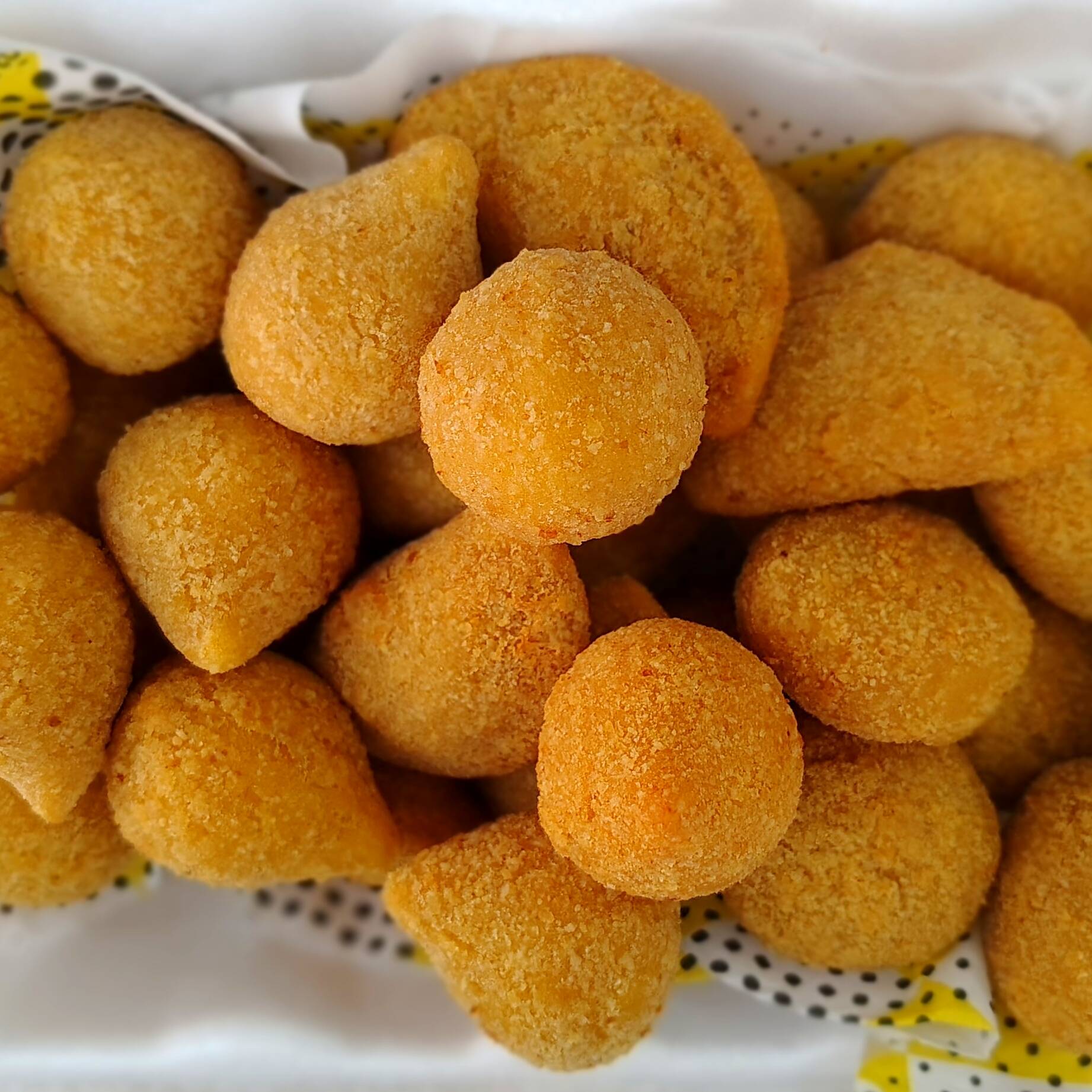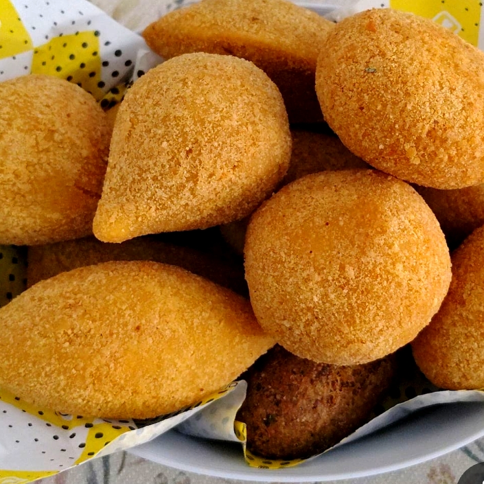 Uma explosão de sabor nesse salgado. Feito com a mesma massa da coxinha e um recheio delicioso de calabresa, queijo da roça e orégano. Crocante por fora e cremoso por dentro!