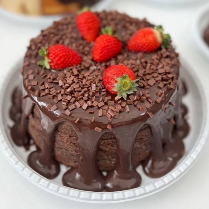 Deliciosa massa super fofinha de chocolate, com cobertura de brigadeiro 50% cacau por cima, finalizado com granulado.