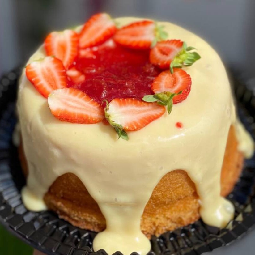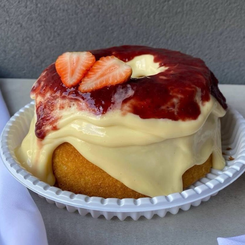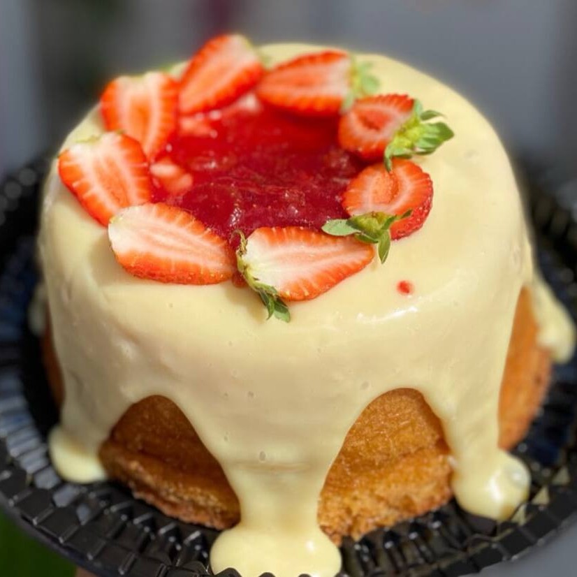Massa fofinha e cobertura cremosa que você escolhe! Finaiizado com morangos. Serve 10 pessoas.