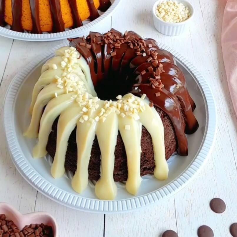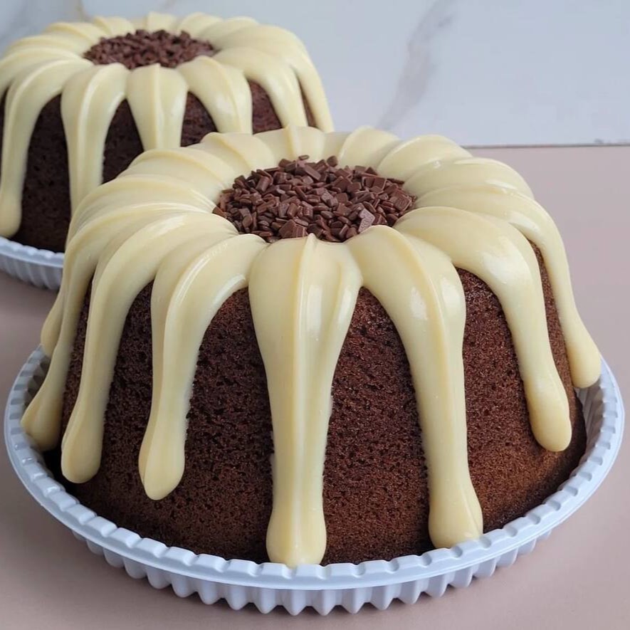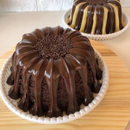 Massa fofinha de chocolate com cobertura cremosa de chocolate e Ninho.