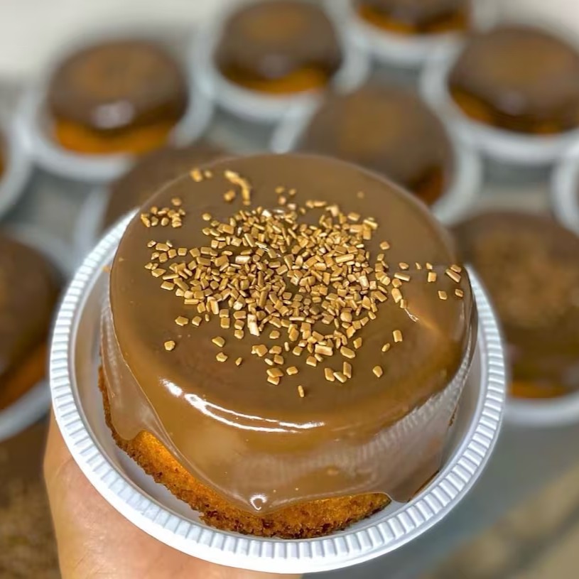 Mini bolo vulcão, com massa deliciosa de cenoura, e cobertura de brigadeiro cremoso.