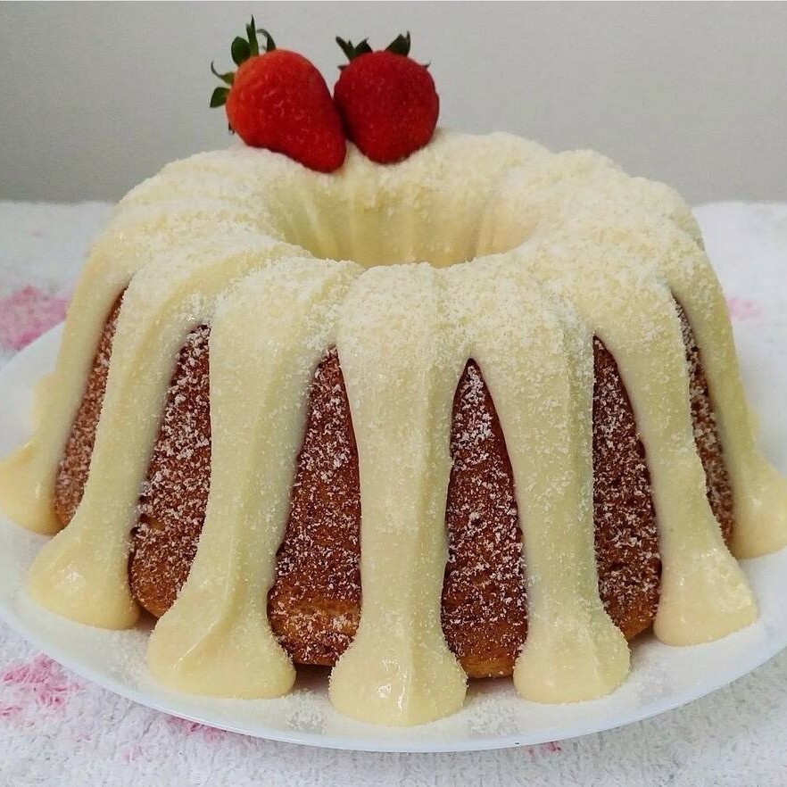 Massa fofinha de Ninho com cobertura cremosa de Ninho finalizado com geleia de morango.