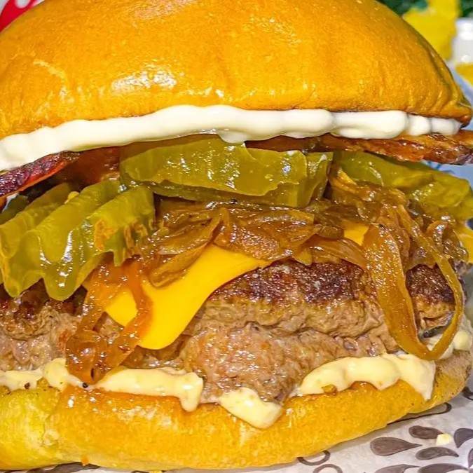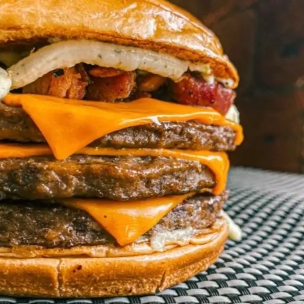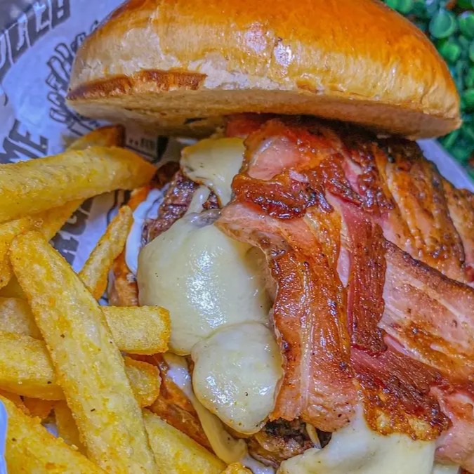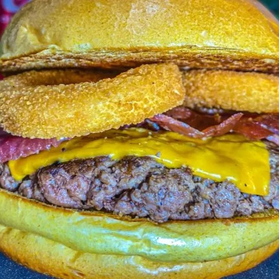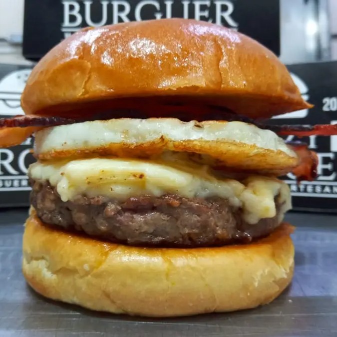 Pão brioche extremamente macio , 160 de carne Bovina, queijo derretido,ovo , bacon crocante e maionese grill