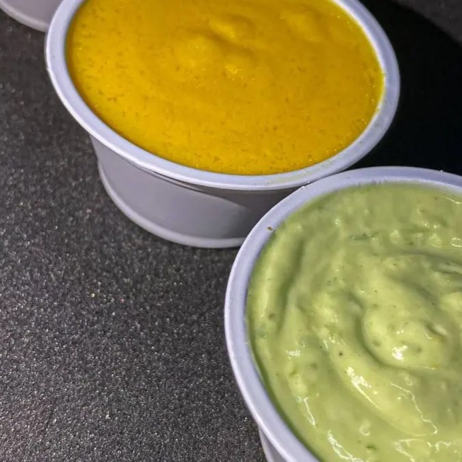 2 crazy salada ( pão brioche, carne de boi tradicional 90gr, alface, tomate e molho) aproximadamente 500gr de batata com ketchup, molho da casa e cheddar e bacon, 8 onion e calabresa