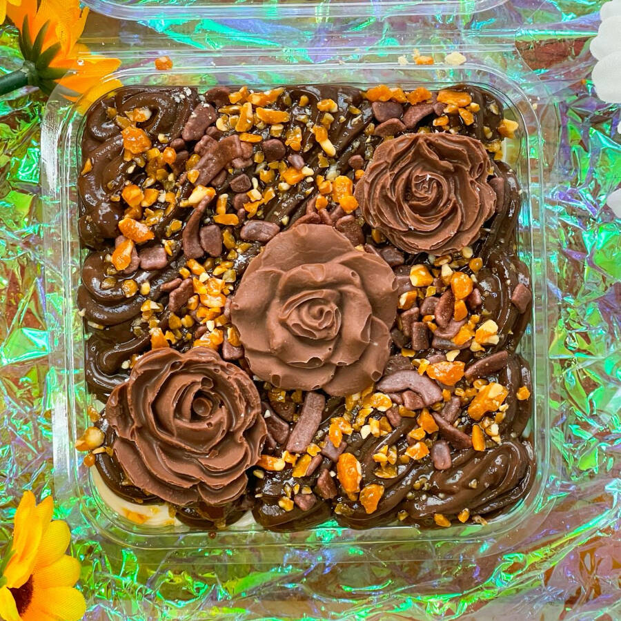 Um pavê de chocolate irresistível, com nosso recheio de brigadeiro. Cada pedaço é uma explosão de indulgência, combinando a doçura do chocolate com a textura cremosa do brigadeiro.