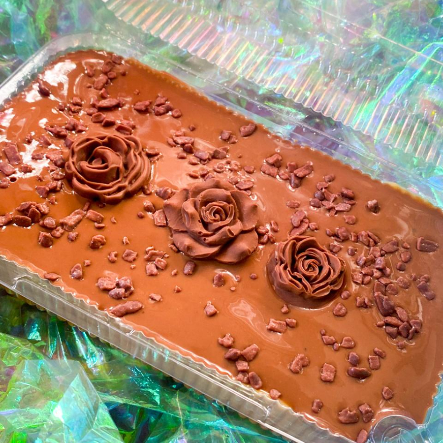 Massa fofinha de cacau 50% com um delicioso recheio de doce de leite feito na loja. Um sabor caseiro e irresistível em cada pedaço!