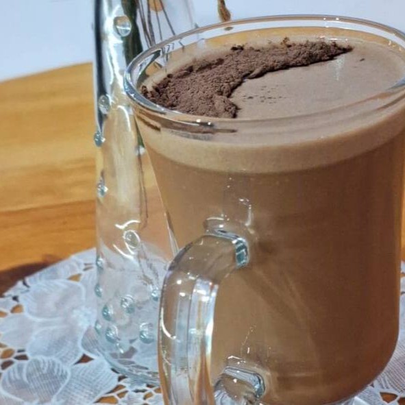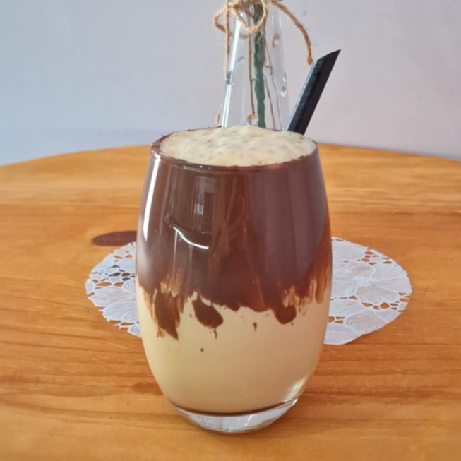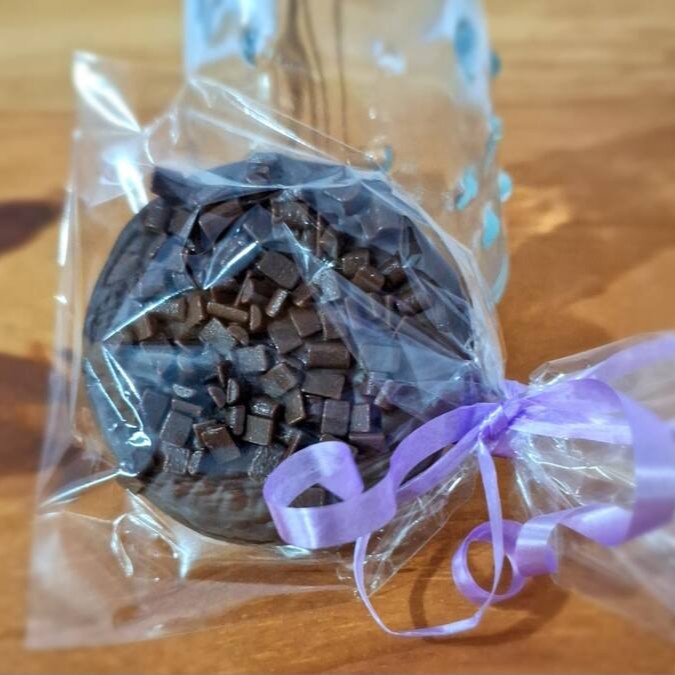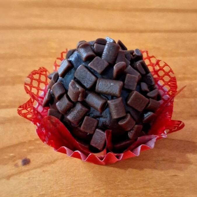 Brigadeiro de chocolate e glaçado com chocolate preto.