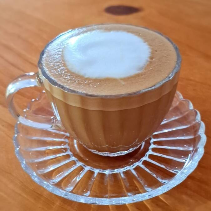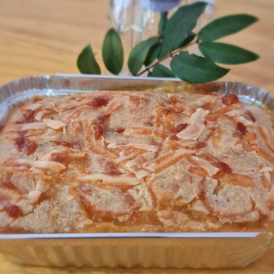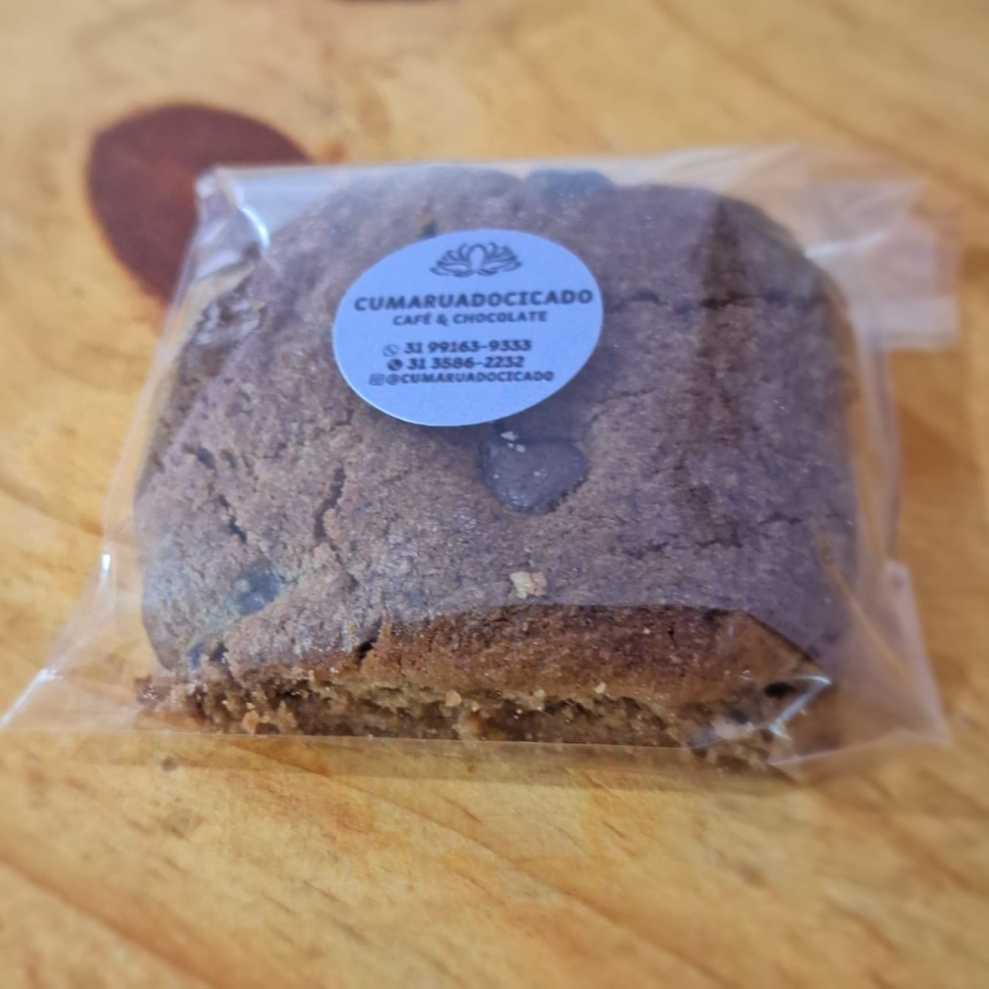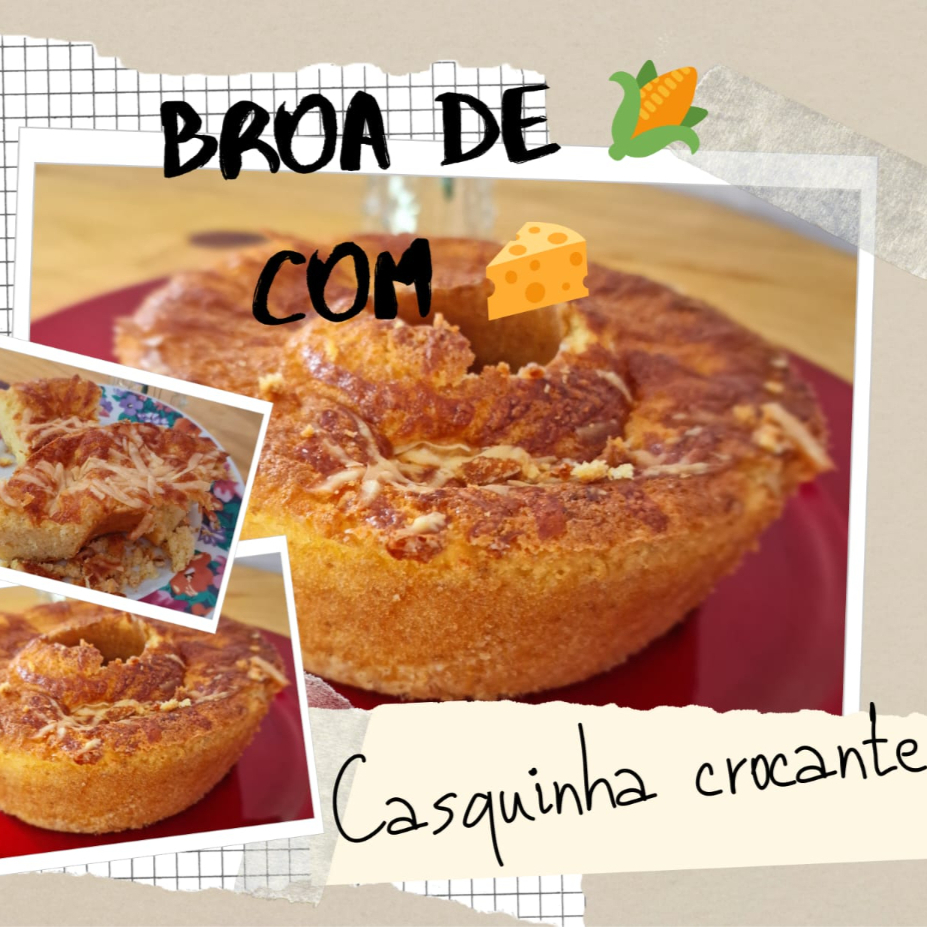 Fatia de broa de milho com queijo mussarela e parmesão.
